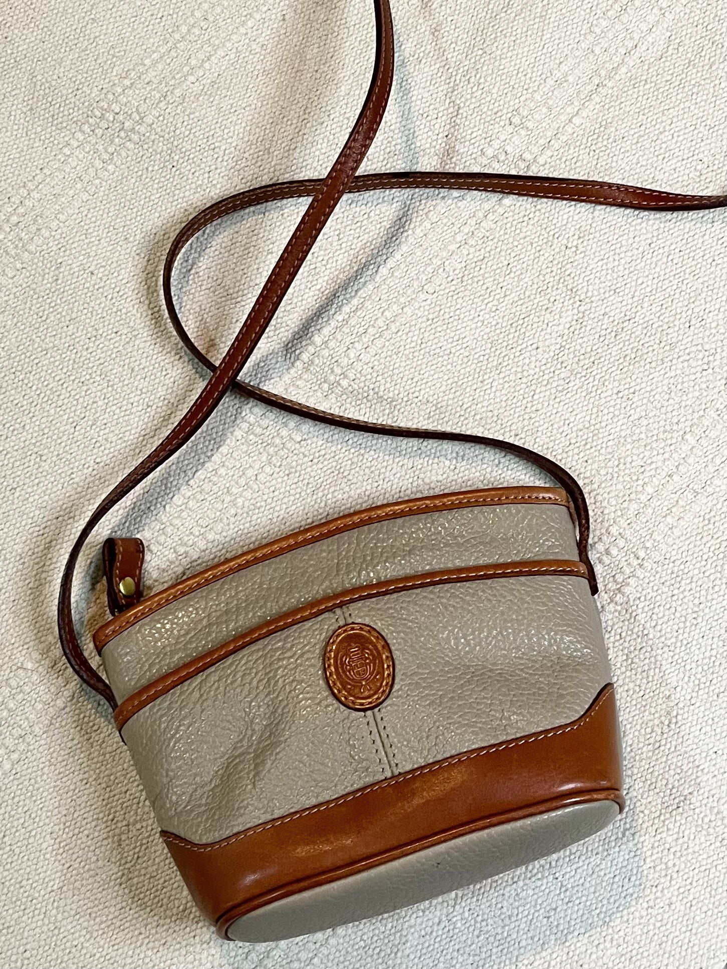 Carry a piece of vintage charm with this Jasper Crossbody. Liz Claiborne label. Crafted from genuine leather in a beautiful two-toned taupe and camel palette, this timeless piece evokes the elegance of classic design. The secure zipper closure features a leather tab pull for an authentic touch, while the fixed strap keeps your essentials close. Perfect for those who appreciate quality craftsmanship and enduring style from a beloved heritage brand.